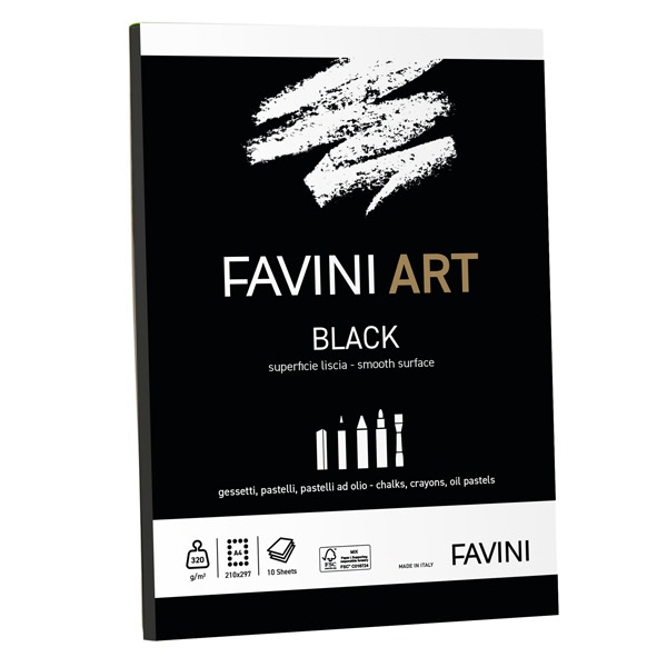 • Album di carta nera adatto a gessetti, pastelli a cera o olio, tempere bianche, pennarelli acrilici e penne a gel. L’intensità del colore nero sulla superficie liscia naturale farà risaltare ancor di più i lavori.