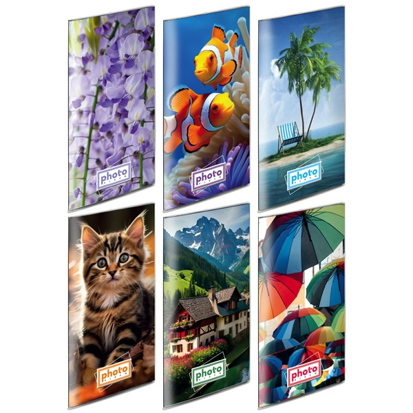 • Album portafoto a busta saldati sul dorso. Confezioni con copertine assortite con buste bianche e nere. 96 foto da 10x15cm. Formato 17,5 x 32,5cm.