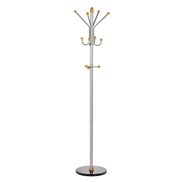 • In metallo satinato colore argento con base in marmo- 4 pomelli superiori, 4 pomelli bassi e 3 pomelli per accessori e portaombrelli. Altezza 185cm, base 40cm.