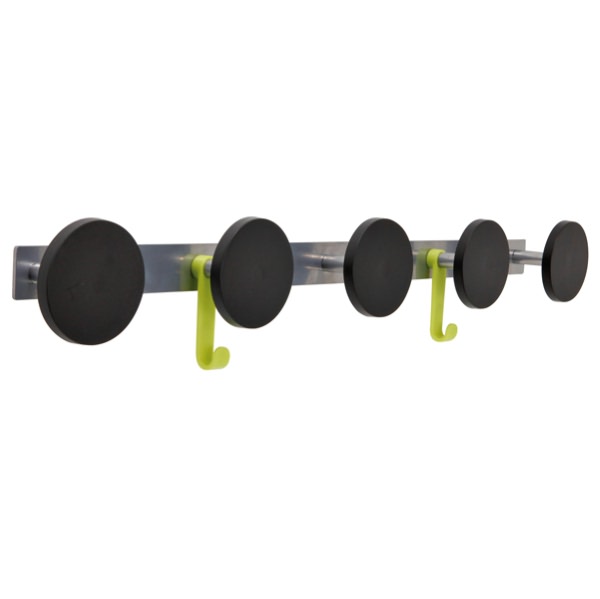 • Appendiabiti in acciaio e abs con 5 supporti tondi (90mm di diametro). Viti per in fissaggio comprese. Dimensioni 77x9cm.