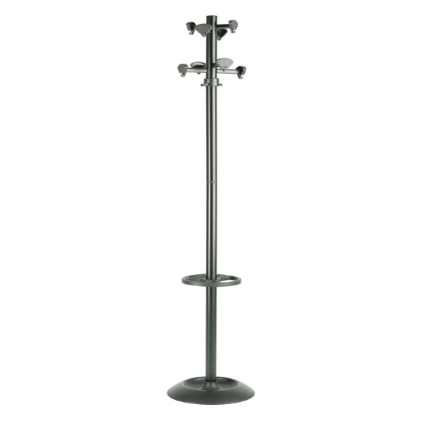 • Appendiabiti da terra con stelo in metallo. Base in plastica con vaschetta raccogligocce. Dotato di 8 supporti e portaombrelli. Testa girevole. Dimensioni: 175x39cm