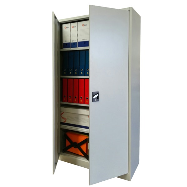 • Armadio per archiviazione ed ufficio con porte battenti. Struttura portante realizzata in lamiera d’acciaio di prima scelta presso piegata di spessore 8/10. Serratura/maniglia a “timone” con chiusura a 3 vie e doppia chiave in dotazione 1 ripiano regolabile in altezza predisposto per l’inserimento di cartelle sospese a lettura laterale di interasse 33 cm. Ripiano con portata di 50 Kg. cad. Due ante battenti con apertura di 135gradi Verniciatura con polveri epossidiche. Colore Grigio (RAL 7035) Dimensioni L100 x P45 x H200cm Garanzia 2 anni per vizi di fabbricazione. Materiale fornito smontato ed imballato in 1 collo di cartone Il prodotto è conforme ai requisiti richiesti CAM dal D.M. 23.06.2022 in merito ai “criteri ambientali per la fornitura di arredi interni".