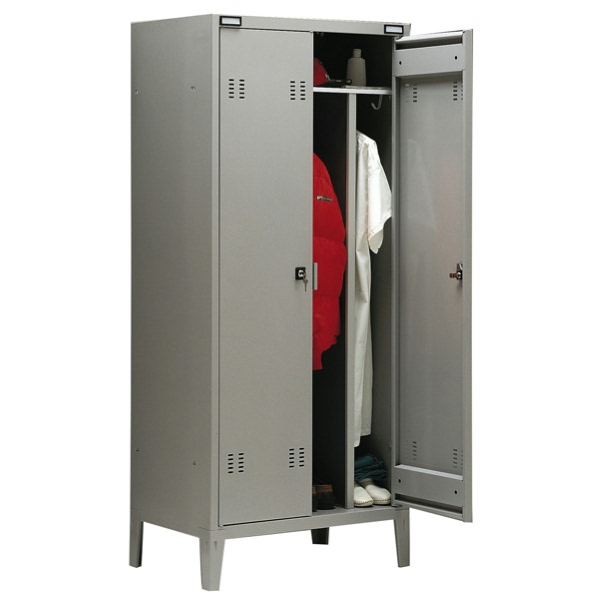 • Armadio spogliatoio a 2 posti con divisorio sporco/pulito L80 x P47 x H180cm; in metallo verniciato grigio, provvisto di serratura e chiavi. Fornito montato.