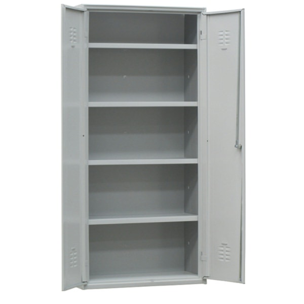 • Armadio multiuso a 2 ante battenti con struttura in lamiera d’acciaio profilata di prima scelta. Costituito da 1 vano da 4 ripiani interni rettangolari regolabili su asole in 8 posizioni differenti. Porta cartellino in materiale plastico applicato all’anta. Chiusura con serratura a cilindro con doppia chiave in dotazione. Fornito montato. Dimensioni: L100 x P40 x H180cm - peso 46kg Colore di serie corpo: Grigio RAL 7035 Colore di serie ante: Grigio RAL 7035 MADE IN ITALY
