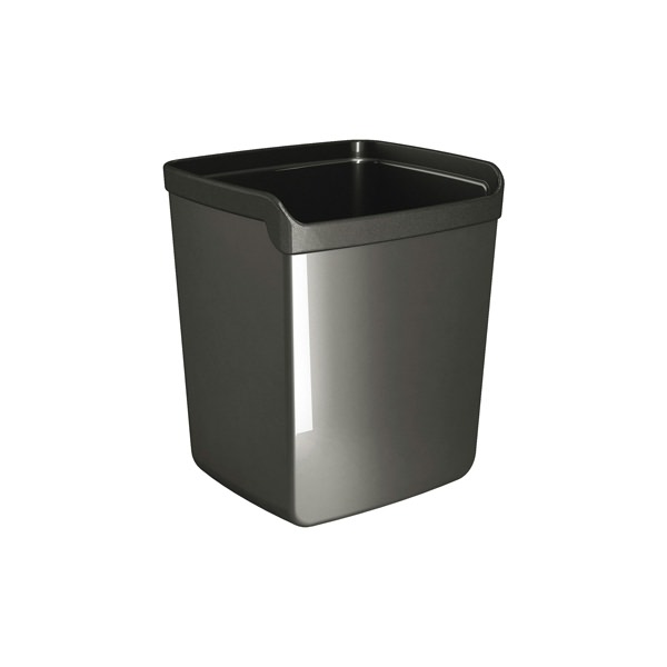 • Bicchiere portapenne cilindrico capiente e stabile realizzato in materiale infrangibile con accostamenti di finiture lucide e satinate. Dimensione: 8,7x7,4cm -H10cm.
