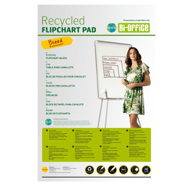 • Maxiblocco da 50 fogli 65x98cm in carta riciclata al 100% per lavagne a fogli mobili. Carta bianca da 70gr con foratura a 6 fori standard per adattarsi a tutti i portablocchi.