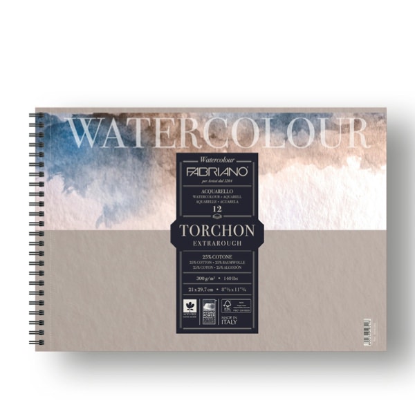 - LA CARTA PER ACQUERELLO FABRIANO WATERCOLOR TORCHON SI PRESENTA CON UNA GRANA "ROTONDA" CHE PERMETTE DI OTTENERE RISULTATI PITTORICI DI PARTICOLARE EFFETTO. LA CARTA È REALIZZATA CON UNA MISCIELA DI COTONE. PRODOTTA CON 100% DI CELLULOSA ECF. CERTIFICATA FSC. IDEALE PER ACQUERELLO, TEMPERA, GOUCHE, ACRILICO, INCHIOSTRO E DISEGNO. FOGLI MICROPERFORATI.