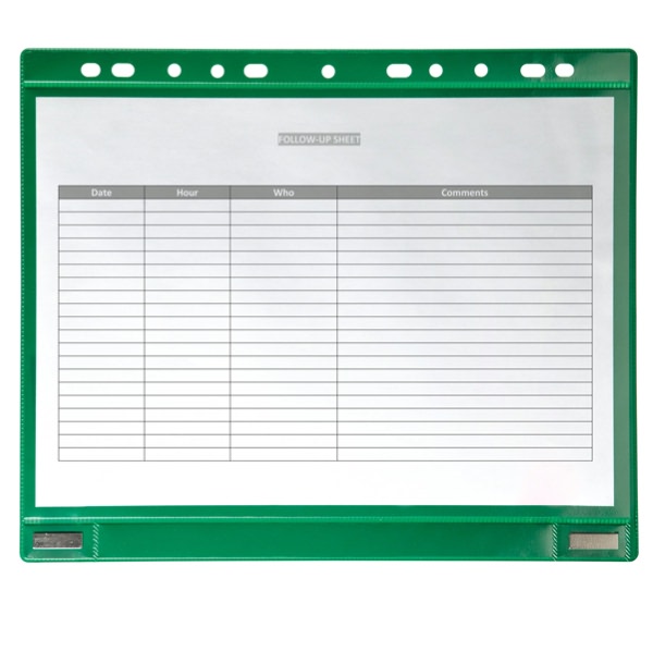 - Buste perforate in PVC senza ftalati, estremamente resistenti e flessibili; colori ultravisibili, perforazione universale sul lato. Dotate di magneti extraforti che permettono di sfogliare le buste bloccandole in posizione verticale quando utilizzate con l'apposito supporto Djois 181110 o 181111. Dimensioni: A4 315x265mm. Colore verdi