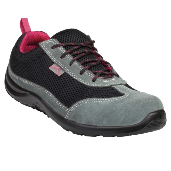 • Scarpa bassa S1P con tomaia in pelle scamosciata e poliestere«mesh». Soletta di pulizia staccabile preformata (poliestere su EVA). Suola iniettata - PU mono-densità. Puntale in metallo. Categoria DPI: 2. Certificazione CE. Conformità alle norme EN ISO 20344:2011 e EN ISO 20345:2011.