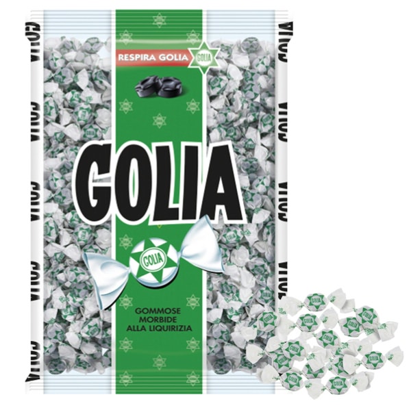 - Caramelle Golia gusto liquirizia confezionate singolarmente busta 1kg (500pz circa) Ingredienti: addensante: gomma arabica, sciroppo di glucosio, zucchero, stabilizzanti: sorbitolo, glicerolo; estratto di liquirizia, fruttosio, colorante: caramello semplice, aromi naturali, olio di cocco. Informazioni nutrizionali per 100 g: Energia: 1108 kJ / 265 kcal – Grassi: 0,2 g (di cui acidi grassi saturi: 0,1 g) – Carboidrati: 51 g (di cui zuccheri: 34 g) – Proteine: 0 g – Sale: 0 g. Gluten Free