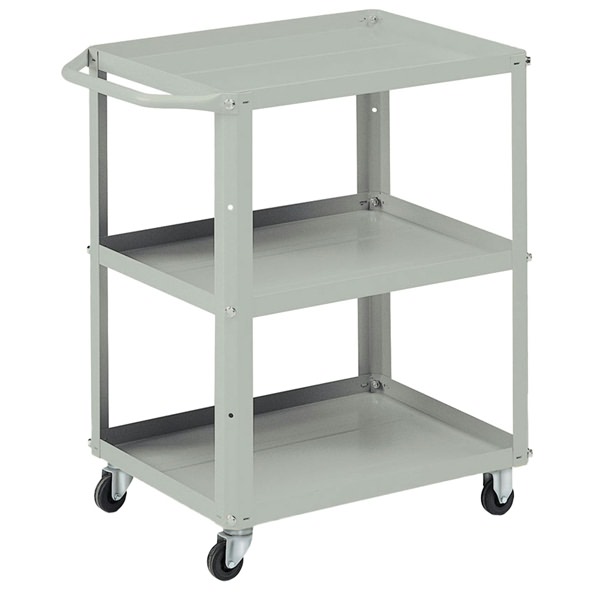 • Pratico carrello a 3 vasche smontabile in lamiera sagomata idoneo all’utilizzo in ambienti ridotti. Verniciatura a polvere grigio RAL 7038. Dimensioni ingombro: mm. 710 x 450 x 780 h. Dimensioni vasca: mm. 600 x 450 x 30 h. Spessori: vasche 15/10 - montanti 20/10. Ruote: ø mm. 60 con boccola (2 fisse e 2 girevoli). Portata carrello: Kg. 120. Portata vasca: Kg. 40. Fornito smontato.