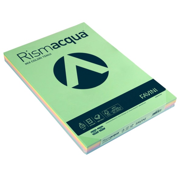 Carta Rismacqua - A3 - 140 gr - mix 5 colori - Favini - conf. 200 fogli