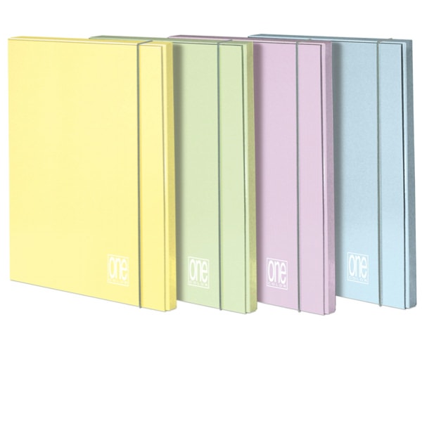 • Cartella con elastico tubolare sul lato lungo. Tre alette. Dimensioni 26x35cm. Dorso 12mm. In cartone pesante monocolore lucido in colori assortiti pastello.