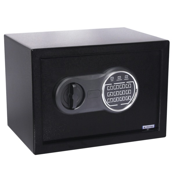- Casseforti di sicurezza per la custodia di oggetti di valore e contanti, con chiusura elettronica + 2 chiavi d’emergenza (ogni cassaforte ha la propria chiave). Verniciatura a polvere termoindurente. Cerniere interne nascoste per una maggiore sicurezza. Tappetino sul fondo. Può essere fissata a pareti in mattone o pavimenti (tasselli inclusi). Codice di sicurezza 3-8 cifre. Colore nero. Ideali per hotel, b&b, affittacamere, ospedali, comunità.