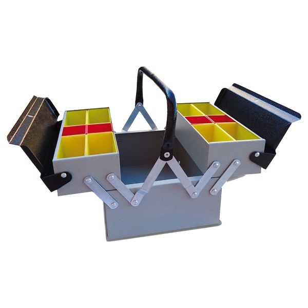 • Cassetta portautensili a 3 scomparti in lamiera verniciata a polvere epossidica, ideale per riporre e ordinare minuterie ed utensili. Dimensioni: L26 x P22 x H20cm - Peso 2,4kg.