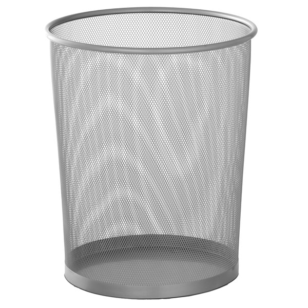 • Cestino gettacarte tondo in metallo traforato colore argento. Dimensioni: diametro 29cm - altezza 34cm.