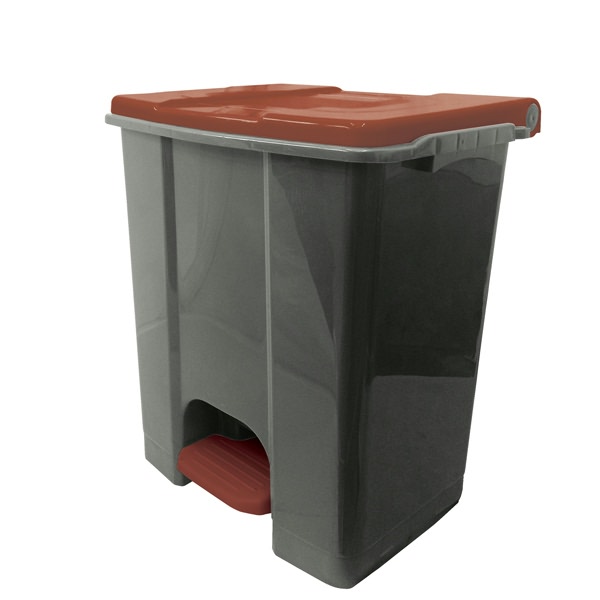 - Contenitore in polipropilene plastica riciclata (minimo 70%); sistema d’apertura del coperchio in plastica; ampio pedale nel colore del coperchio per utilizzo conforme al metodo HACCP; maniglia di trasporto posteriore integrata; ruote in plastica per un facile spostamento. Contenitori risultano particolarmente adeguati sia per uso interno che esterno. Dimensioni: 480 × 390 × 550 mm. Capacità: 60lt. La tonalità di grigio del contenitore, essendo realizzato in plastica riciclata, è soggetta a possibili variazioni (grigio scuro o grigio chiaro).