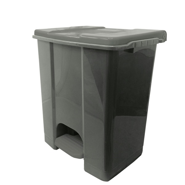 - Contenitore in polipropilene plastica riciclata (minimo 70%); sistema d’apertura del coperchio in plastica; ampio pedale nel colore del coperchio per utilizzo conforme al metodo HACCP; maniglia di trasporto posteriore integrata; ruote in plastica per un facile spostamento. Contenitori risultano particolarmente adeguati sia per uso interno che esterno. Dimensioni: 480 × 390 × 550 mm. Capacità: 60lt. La tonalità di grigio del contenitore, essendo realizzato in plastica riciclata, è soggetta a possibili variazioni (grigio scuro o grigio chiaro).