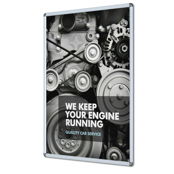 • Cornici a scatto con angolo arrotondato e protezione antiriflesso in PVC. Fondo in materiale plastico PS. Tutte le cornici sono utilizzabili sia in orizzontale che verticale. Formato 70x100cm - profilo 25mm. Kit per fissaggio a muro non fornito.