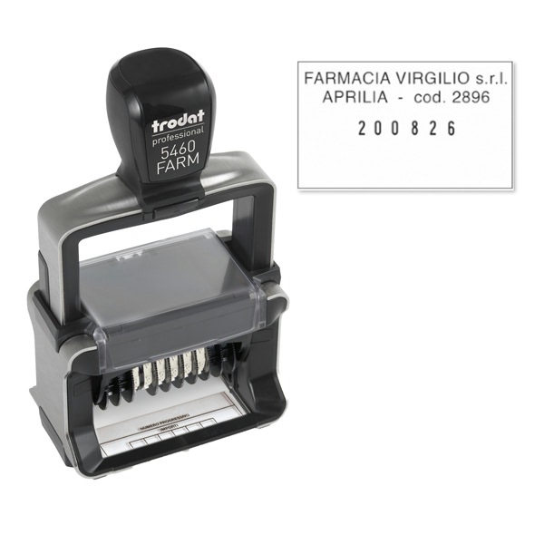 • Datario autoinchiostrante per Farmacie, in acciaio Inox. Mascherina di posizionamento per centrare agevolmente le caselline delle ricette mediche. Inchiostro indelebile secondo la normativa DIN ISO 14145-2. Piastra 56x33mm. Altezza data in numeri 4 mm.