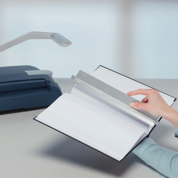• Il de-binder e' necessario per aprire le copertine rilegate e poter modificare il contenuto aggiungendo o rimuovendo le pagine. Le copertine possonon essere aperte e richiuse fino ad un massimo di 3 volte. Dimensioni 50x7x340mm.