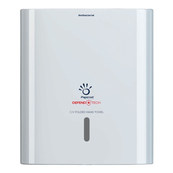 • Il dispenser Defend Tech bianco per asciugamani piegati C e V permette una facile dispensazione dei fogli grazie anche ad un pratico adattatore e le sue dimensioni contenute lo rendono ideale anche per spazi piccoli.