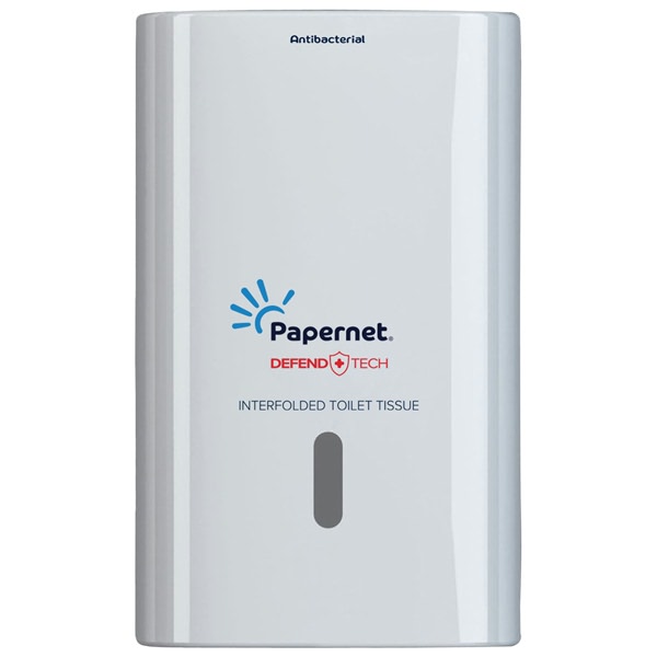 • Il dispenser Defend Tech bianco per carta igienica interfogliata è perfetto per bagni molto piccoli e con media affluenza. Questo articolo permette di ottimizzare lo spreco grazie all’erogazione di un foglio per volta.