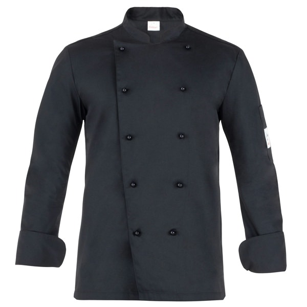 • Giacca da cuoco a manica lunga con abbottonatura doppio petto, collo e polsi arrotondati, porta penne sulla manica sinistra. Vestibilità Slim Fit e bottoni estraibili sulla pettorina davanti. Realizzata in tessuto 65% poliestere 35% cotone nella variante nera. Ha la variante manica corta nella giacca Tommaso. Taglie: XS, S, M, L, XL, XXL, 3XL, 4XL, 5XL