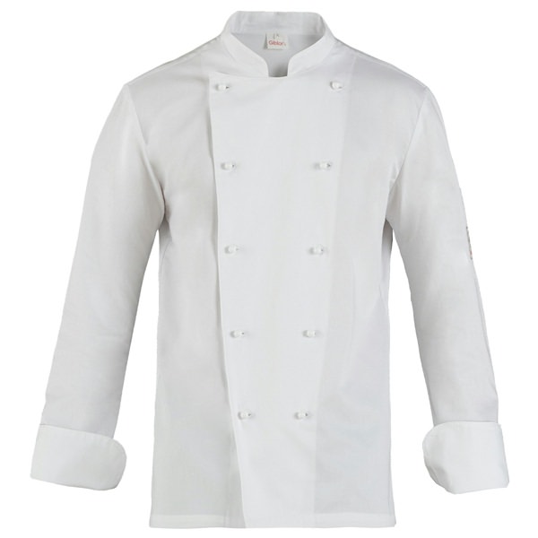 • Giacca da cuoco a manica lunga con abbottonatura doppio petto, collo e polsi arrotondati, porta penne sulla manica sinistra. Vestibilità Slim Fit e bottoni estraibili sulla pettorina davanti. Realizzata in tessuto 100% cotone nella variante bianca. Ha la variante manica corta nella giacca Tommaso. Taglie: XS, S, M, L, XL, XXL, 3XL, 4XL, 5XL