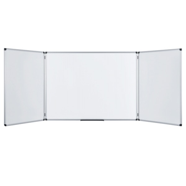 • Lavagna salvaspazio multisuperficie: lo spazio a disposizione per le vostre riunioni è triplicato! La superficie della lavagna è in acciaio smaltato antigraffio e antidissolvenza, magnetica e scrivibile. L'apertura a compasso delle sezioni consente di nascondere materiale riservato o pre-preparato. Fornita con vaschetta porta accessori e kit per fissaggio a muro. Dimensioni chiusa: 90x120cm. Dimensioni aperta: 90x240cm. Garanzia di 25 anni in condizioni di utilizzo normale.