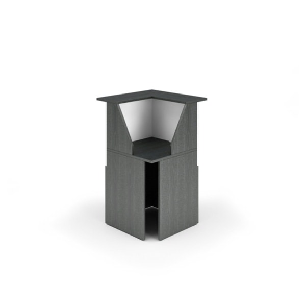 • antiriflesso. Modulo angolare 90° Dimensioni totali: L76,1 x P76,1 x H117cm. Sopralzo prof. 30cm. Desktop prof. 60cm. I banconi sono tutti autoportanti, compreso il modulo ad angolo 90° (reversibile destro/sinistro), e permettono l’allestimento di postazioni di lavoro personalizzate secondo le esigenze e lo spazio a disposizione. Gli elementi si integrano fra loro creando soluzioni flessibili e funzionali, per cui la reception non connota più una barriera, ma un’area di accoglienza, grazie anche allo speciale modulo per portatori di disabilità privo di sopralzo. Disegnata pensando all’utilizzatore moderno, i banconi sono completi di fori passacavi ed i sopralzi sono posti ad un’altezza di 117 cm, in modo da permettere il posizionamento di numerosi modelli di monitor di ultima generazione, anche di dimensioni generose, al di sotto di quest’ultimi. Ogni modulo è completo di separatori laterali (prof. 35 cm, sp. 18 mm) per garantire privacy ed isolamento acustico. Dotata di piedini regolabili in altezza. In materiale nobilitato bilaminato melaminico (sp. 18 e 22 mm) a bassa emissione di formaldeide, conforme alle norme UNI e EN classe E1. Finiture antigraffio e