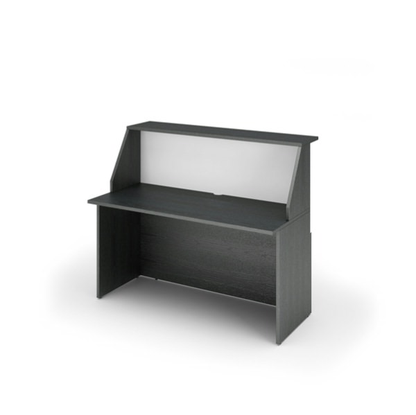 - Reception modulare dal design lineare e moderno. Dimensioni totali: L140 x P76,1 x H117cm. Dimensioni sopralzo: L140 x P30cm. Dimensioni desktop: L140 x P60cm. I banconi sono tutti autoportanti, compreso il modulo ad angolo 90° (reversibile destro/sinistro), e permettono l’allestimento di postazioni di lavoro personalizzate secondo le esigenze e lo spazio a disposizione. Gli elementi si integrano fra loro creando soluzioni flessibili e funzionali, per cui la reception non connota più una barriera, ma un’area di accoglienza, grazie anche allo speciale modulo per portatori di disabilità privo di sopralzo. Disegnata pensando all’utilizzatore moderno, i banconi sono completi di fori passacavi ed i sopralzi sono posti ad un’altezza di 117 cm, in modo da permettere il posizionamento di numerosi modelli di monitor di ultima generazione, anche di dimensioni generose, al di sotto di quest’ultimi. Ogni modulo è completo di separatori laterali (prof. 35 cm, sp. 18 mm) per garantire privacy ed isolamento acustico. Dotata di piedini regolabili in altezza. In materiale nobilitato bilaminato melaminico (sp. 18 e 22 mm) a bassa emissione di formaldeide, conforme alle norme UNI e EN classe E1. Finiture antigraffio e antiriflesso.
