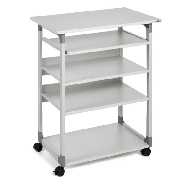 • STRUTTURA IN ACCIAIO VERNICIATO CON POLVERI EPOSSIPOLIESTERE ANTIGRAFFIO E RACCORDI ANGOLARI IN PLASTICA RESISTENTE. REGOLABILE IN ALTEZZA AGGIUNGENDO ALLA STRUTTURA LE APPOSITE PROLUNGHE DA 20 CM (incluse). DOTATO DI 5 RIPIANI IN MELAMINICO SPESSORE 19 MM DI CUI UNO SCORREVOLE PER TASTIERA. I RIPIANI CENTRALI SONO REGOLABILI IN ALTEZZA. 4 RUOTE PIVOTTANTI DI CUI 2 BLOCCABILI. DIMENSIONI: L 750 X P 534MM - H 950/1150MM.
