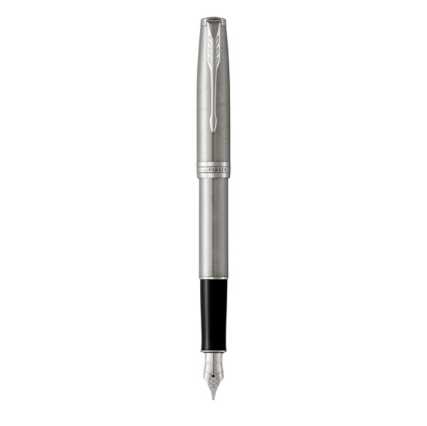 • Elegante penna con finiture in acciaio inossidabile con effetto metallo spazzolato. Con finiture in palladio sui puntali e pennino in acciaio inossidabile. Fornita con cartuccia quink nera. Fornito con esclusivo astuccio Parker.