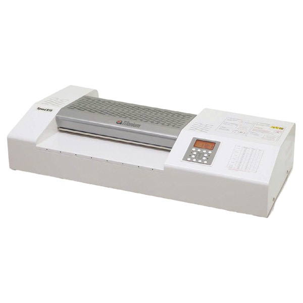 - Plastificatrice professionale 10 rulli, in formato A3, adatta all'utilizzo intensivo in ufficio o in un service. Luce di plastificazione: max 330mm (13''). Pouches: f.to A3. Spessore pouches: fino a 2x175mic. Tempo di preriscaldamento: 8min. Sistema Heating Roller Internal Heater Nr. rulli: 6 riscaldamento+ 4 pressione Velocità di plastificazione: 4.000mm/min. Regolatore di temperatura: si. Temperatura di funzionamento: max160°. Indicatore LED "Ready": si. Interruttore di inversione (RELEASE): si. Consumo di energia: 1.300watt. Dimensioni: 140x270x655mm. Peso: 27kg.