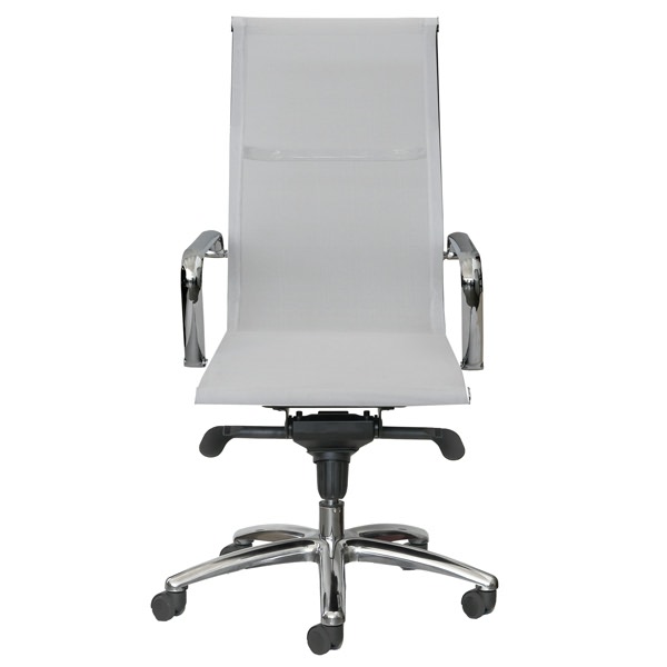 • Poltrona direzionale adatta ad un uso intenso. Base in acciaio cromo Ø66cm. Struttura in acciaio tubolare ellittico cromo. 5 ruote in nylon Ø5cm. Sedile in rete. Braccioli inclusi (non rimovibili). Meccanismi: elevazione a gas, meccanismo oscillante con blocchi. Schienale fisso con supporto lombare. Altezza totale: 109-119cm; Profondità tot: 66cm; Alt. schienale: 53cm; Larghezza schienale: 46cm; Larghezza sedile:48cm; Profondità sedile: 45cm. Portata massima:110kg. Garanzia: 2 anni.