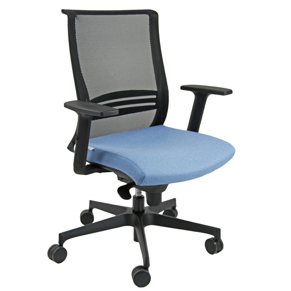 • Seduta semidirezionale ergonomica girevole con elevazione a gas meccanismo oscillante con blocco. Dotata di supporto lombare regolabile. Rivestimento in tessuto "PLUS - Bondai" 100% poliestere no flame e certificazioni di infiammabilità 1.IM UNI 9175. Completa di braccioli regolabili. Alt.tot.: 117-127cm; Prof.tot.: 68cm; Alt.schienale: 52cm; Larg.schienale: 48cm; Larg.seduta: 48cm; Prof.Sedile: 48cm; Alt. sedile: 42-53cm.