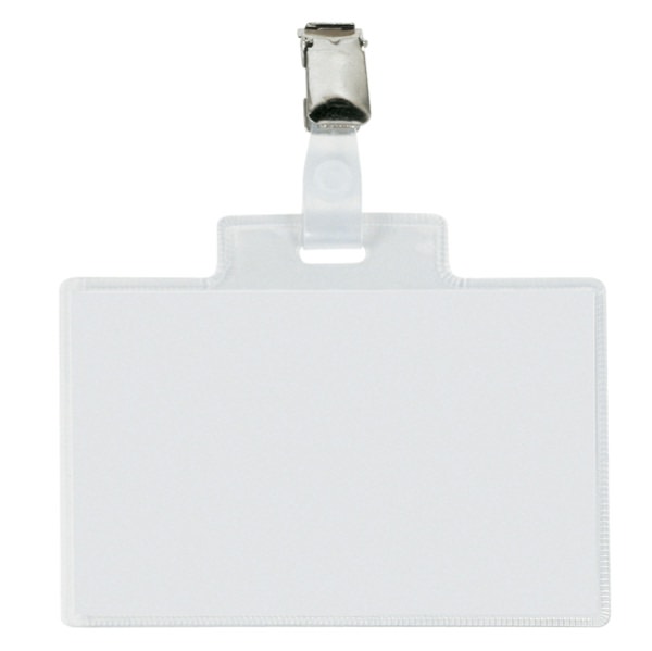 • Porta nomi in PVC trasparente, alto spessore, completi di pinzette in metallo e cartoncini. Adatti a congressi, riunioni, visite guidate. Il cartoncino si inserisce dal lato corto. Formato 110x70mm.