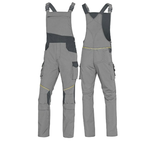 • Gamma abbigliamento da lavoro 65% poliestere 35% cotone. Salopette con bretelle elasticizzate regolabili. 10 tasche di cui 1 tasca portametro. Ginocchia e fondo schiena rinforzati. Categoria DPI: 2. Certificazione CE. Conformità alle norme EN ISO 13688:2013 e EN14404:2004+A1:2010.