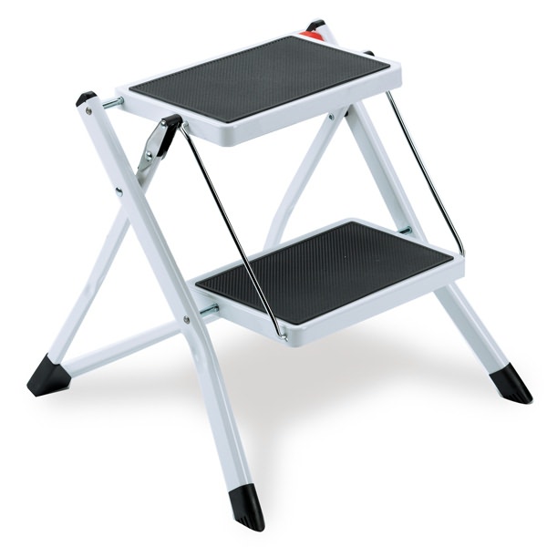 - Sgabello pieghevole in acciaio per uso domestico e bricolage. Prodotto certificato secondo la normativa europea EN14183. Portata garantita 150 kg. Struttura in acciaio, con blocco antichiusura con tasto di sblocco. Comodo manico per il trasporto. Piedini antisdrucciolo. Due ampi gradini con tappetini antiscivolo. Facile da riporre: ingombro chiuso, misura solo 4 cm. Dati tecnici: Gradini: 2 Massima estensione: 44cm Misure scala aperta: 49x50x44cm Misure scala chiusa: 57x50x4cm Peso Netto: 4kg Portata max: 150Kg