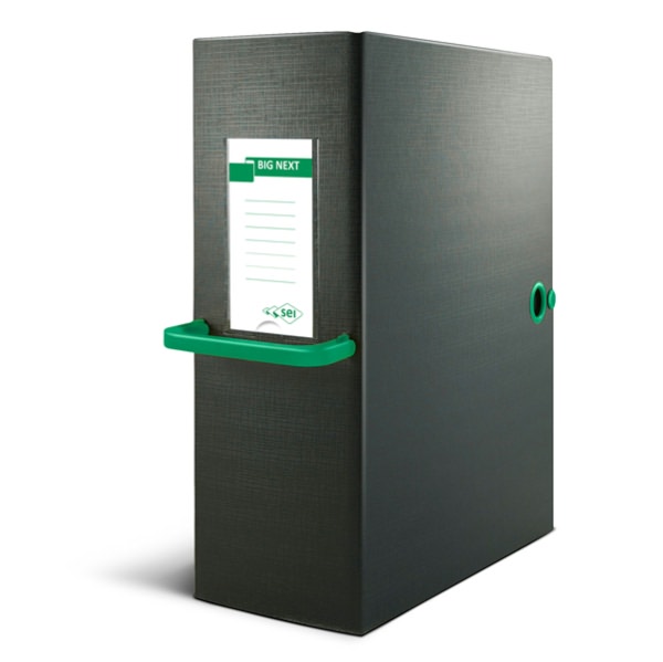 • Cartelle in Colpan® nero (cartone rivestito in PVC) con chiusura a tre lembi. Maniglia in plastica verde. Occhiello e bottoni automatici in metallo nel colore della maniglia. Etichetta intercambiabile colorata. Adatte per l'archiviazione e il trasporto di progetti, disegni, documenti e cartelline. Formato esterno: 260x360mm. Formato contenuto:250x350mm. Dorso 12cm.