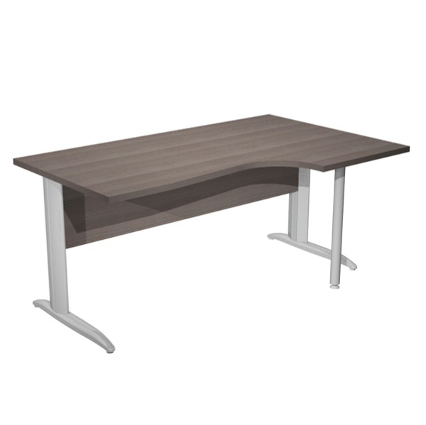 • Scrivania compact destro sagomata con fianchi metal ad L verniciati effetto cromato. Spessore 22mm. Completi di canalina passacavi e piedini regolabili in altezza e supporto metal. Desktop con bordo anti urto in ABS da 2mm. Dimensioni: 160x60/80/100x72cm. Piano frassino toscano.