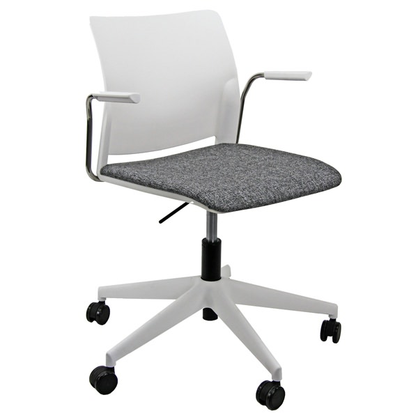 • Seduta interlocutore 100% polipropilene girevole su ruote - elevazione a gas. Completa di braccioli. Rivestimento sedile in tessuto " SUPER - Expo" 100% poliestere e reazione al fuoco classe 1. Alt. tot: 81-92cm; Prof.tot: 62cm; Alt.schienale: 36cm; Largh.schienale: 48cm; Largh. sedile: 50cm; Prof.sedile: 44cm; Alt.sedile: 44-55cm. Certificazioni: EN 16139: 2013.