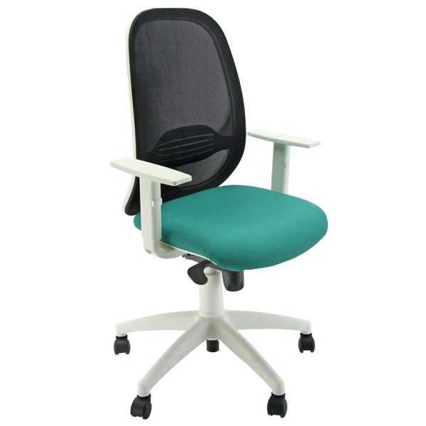- Sedia girevole su ruote con sedile in rete portante e schienale in rete nera, elevazione a gas. Supporto lombare regolabile, meccanismo syncro tra sedile e schienale, a contatto permanente. Rivestimento seduta in tessuto "SUPER-Target" 100% poliestere, idrorepellente e antimacchia, reazione al fuoco classe 1. Completa di braccioli regolabili. Alt.tot: 102-113cm; Prof.tot: 68cm; Alt.schienale: 60cm; Largh.schienale:48cm; Largh.sedile: 48cm; Prof.sedile: 46cm; Alt.sedile: 42-54cm.