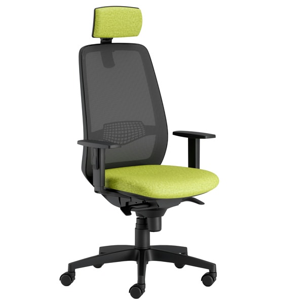 • Sedia girevole operativa. Meccanismi: elevazione a gas - schienale regolabile up-down - meccanismo synchro con sedile traslabile - anti shock - meccanismo a contatto permanente. Rivestimento seduta in tessuto "FASHION - Chili" 75% poliestere ricilato e certificazione di infiammabilità 1IM UNI 9175 EN 1021. Completa di braccioli regolabili e poggiatesta. Alt.tot.: 114-126cm; Prof.tot.: 70cm; Alt.schienale: 58cm; Larg.schienale: 47cm; Larg.seduta: 50cm; Prof.Sedile: 45cm; Alt. sedile: 42-55cm.