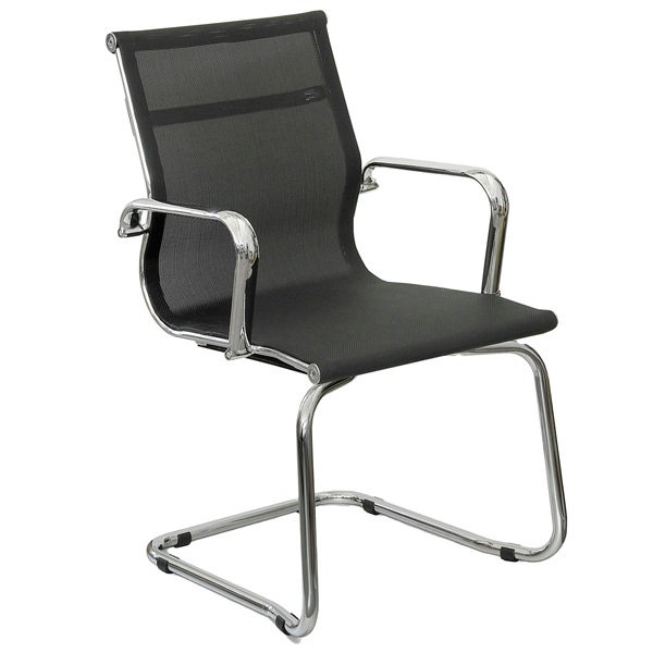 • Seduta visitatore in acciaio cromato. Rivestimento in rete portante di colore nero. Poltrona con schienale basso con supporto lombare. Braccioli inclusi (non rimovibili). Alt. tot: 98cm; Profondità tot: 55cm; Alt. schienale: 53cm; Larghezza schienale: 46cm; Larghezza sedile: 48cm; Profondità sedile: 45cm.