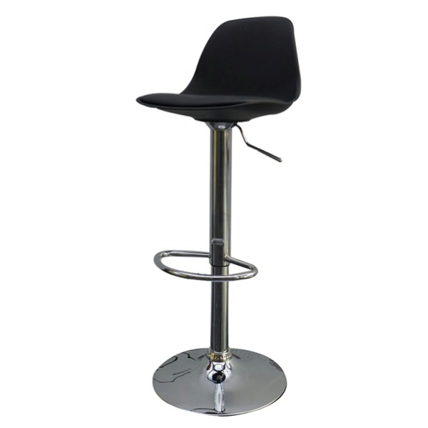 • Sgabello con seduta regolabile in polipropilene e cuscino in similpelle imbottito facilmente lavabile. Base e struttura con poggiapiedi in acciaio cromato. Altezza della seduta regolabile da 59 a 71cm tramite leva con meccanismo di pompa a gas. Dimensioni: 39x42cm - H 83/104cm. Portata max 100kg. Consegnato smontato (di facile assemblaggio).