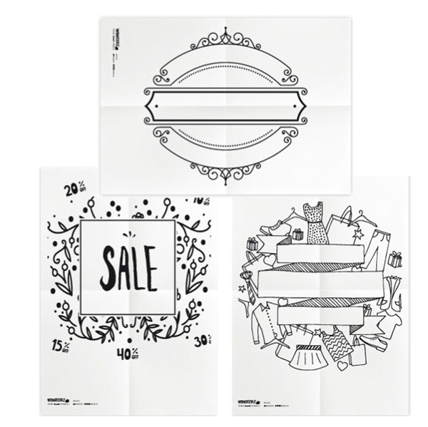 • SET STENCIL a tema SCONTI / OFFERTE, ideali per decorare le vetrine. Su fogli in carta dimensione A2.