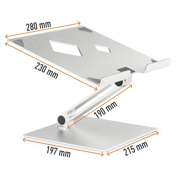 - Supporto universale regolabile per pc portatili e tablet da 10" a 17" (fino a 5 kg). Altezza e angolo di lettura personalizzabili per un posizionamento ergonomico del dispositivo. Permette di utilizzare il pc portatile come schermo (in abbinamento a mouse e tastiera aggiuntivi). Elevata stabilità per lavorare in sicurezza. I gommini antiscivolo proteggono il dispositivo dai graffi. Pieghevole, salvaspazio e comodo da spostare. Ottima dissipazione del calore grazie ai fori di ventilazione e alla base in alluminio. L'ampia fessura frontale permette di aprire e chiudere il notebook facilmente. Realizzato in alluminio da 3,5 mm di spessore che lo rende estremamente robusto e permette di supportare il notebook in modo sicuro e affidabile.