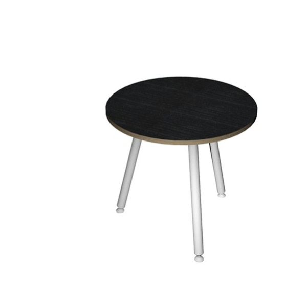 • Linea di arredo operativo dal design innovativo e dinamico caratterizzata dalle gambe in metallo cilindriche inclinate delle scrivanie e dei tavoli rotondi. Robusti piani in melaminico sp. 22 mm con bordo antishock resistente agli urti in ABS 3 mm. Gambe in metallo verniciato bianco (diam. 50 mm) complete di piedini livellabili in altezza. Materiale bilaminato nobilitato melaminico spessore 22 mm conforme norme UNI e EN classe E1. Tavoli rotondi di dimensioni contenute ideali per garantire un pratico e veloce appoggio per riunioni. Dimensioni: Ø80 x 74,4h cm con tre gambe in metallo verniciato bianco Le gambe sono fissate al piano con robuste piastre in metallo. Colore piano nero venato con bordo rovere.